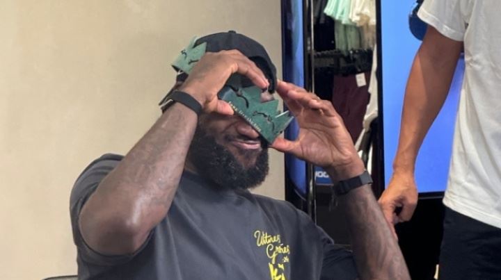 球迷在成都送上亲手制作的王冠👑结果尺寸太大詹姆斯戴不上